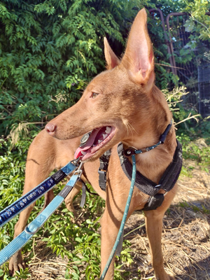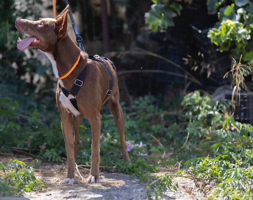 Kumi ist eine im September 2023 geborene Podenca mit einem Gewicht von 15kg, die als Fundhund in die Auffangstation kam.