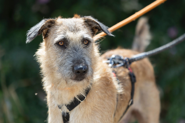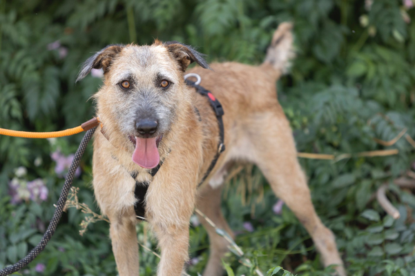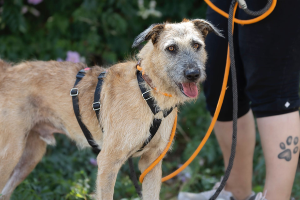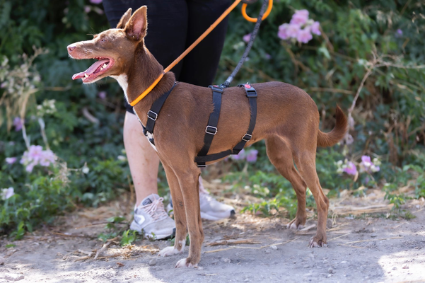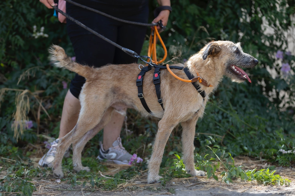möchte gerne beschäftigt werden und genießt gemeinsame Spaziergänge. Er hat eine passable Leinenführigkeit, kann aber bei bellenden Hunden auch Antwort geben. Das muss weiter trainiert