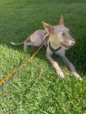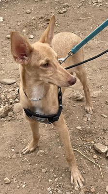 Krishna ist eine im Februar 2025 geborene Podenco andaluz Hündin, die auf der Straße aufgegriffen wurde.